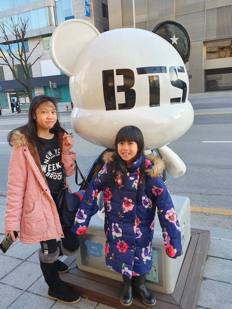 These GangnamDol sculptures serve as a homage to the popular K-pop groups and idols that have contributed to the Korean Wave phenomenon. Visitors to K-Star Road can enjoy seeing and taking photos with these unique and artistic sculptures, which showcase the vibrant and influential nature of the K-pop industry in Gangnam. My girls can’t help but pose on their favorite K Pop GangnamDol idols.